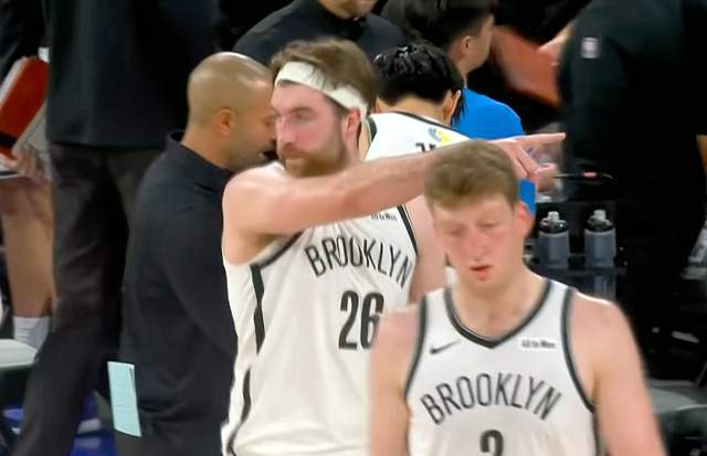 而在常规时间最后4.6秒,两队战成平手,篮网手握球权,相信现场球迷都在期待着曾凡博能否有机会出手投一下绝杀球。暂停期间篮网主帅也在耐心布置,在暂停快要结束的时候,球员们开始往场内走,这个时候篮网助理教练喊住曾凡博,只见他在战术板上不断比划着,难道真的要给曾凡博投?